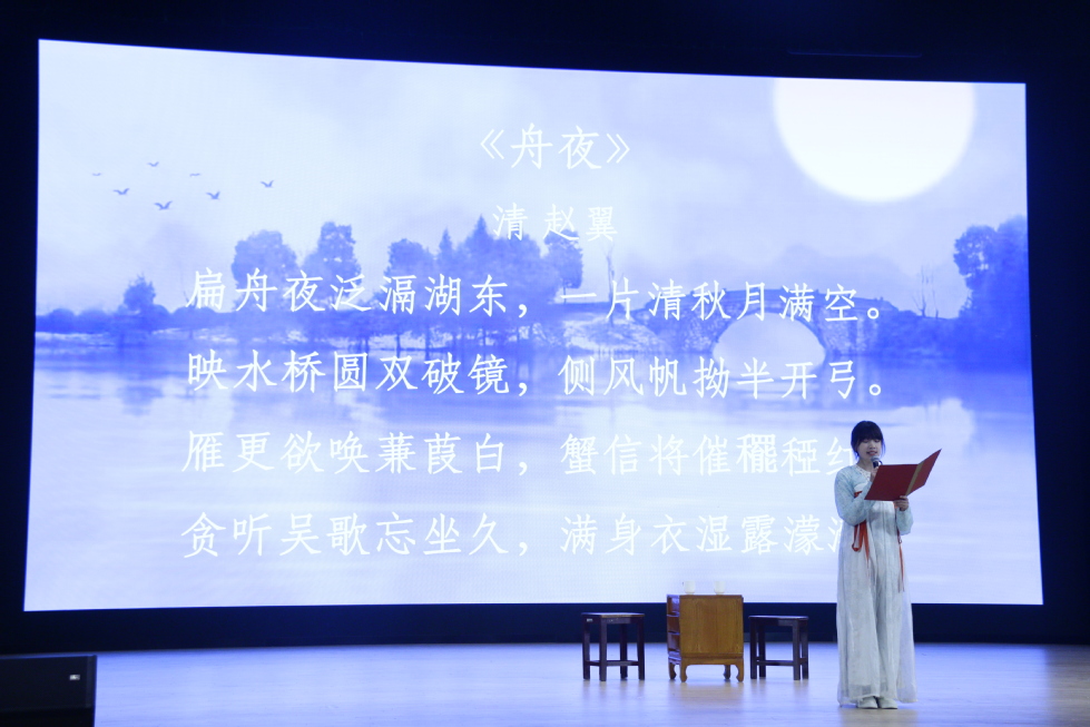新生代表为大家朗诵了清代常州籍著名历史学家、诗人赵翼的诗《舟夜》,以及由91视频