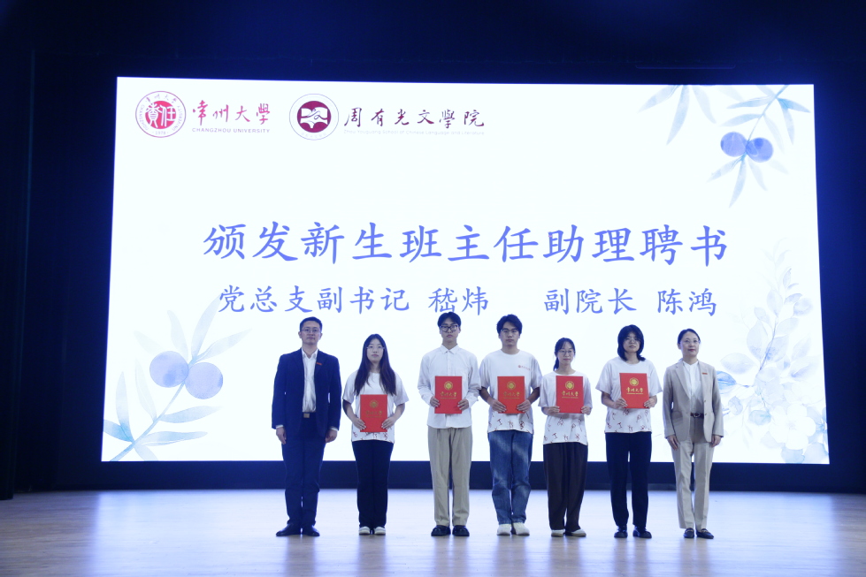2024年新生班主任助理的决定》。党总支书记焦洁庆为新生班主任颁发聘书,党总支副书记嵇炜、副院长陈鸿共同为新生班主任助理们颁发聘书。