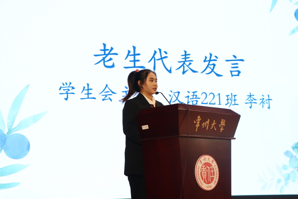 老生代表、院学生会主席、汉语221班李衬同学结合自身学习、工作经历寄语新同学。她建议新生要打牢专业基础、夯实实践本领,努力成为行动上的“巨人”。新生代表、2024年91视频