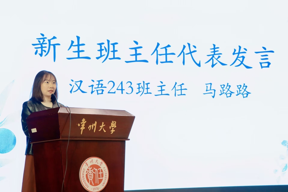 马路路老师代表新生班主任发言。她回顾了自己报考、学习汉语言文学专业的经历,表达了自己对汉语言文学专业的热爱,并围绕“学习汉语言文学专业的意义”这一主题,与新生们一起分享了“用学好专业来赢得自信与发展”的心得与体会。董文康老师代表学院详细介绍了学院导师制的基本内涵和实施方法。她指出,导师不仅是同学们学术上的引路人,也是职业规划、人生发展等方面的指导者,是助力同学成人成才的有效保障和有力支撑。