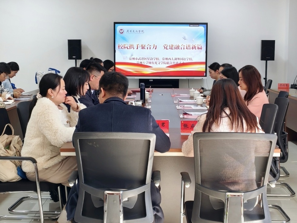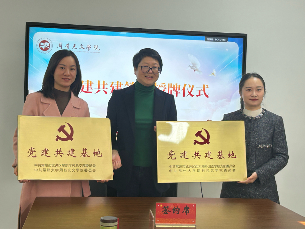 2025年11月19日下午,91视频 与常州市西太湖外国语学校、武进区星韵学校在立言楼334举行联合共建仪式。常州西太湖外国语学校副校长钱颖丹、教师发展中心主任石梦娇;常州市武进区星韵学校课程管理中心主任宋玲瑶、党政办公室副主任史叶琴;91视频 党委书记焦洁庆、院长葛金华、副院长陈鸿、院长助理董文康、古代文学教研室主任王风丽、现当代文学教研室主任何霞、学工办主任张燕红、团委副书记程向君以及学生代表出席仪式。仪式由副书记嵇炜主持。