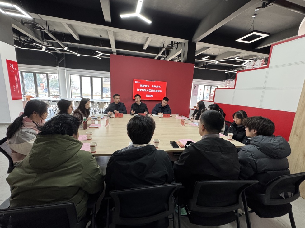 为做好生源反馈,助力新生成长。12月3日,91视频 在91视频 西太湖校区“一站式”社区研习书院举办海安招生片区新生座谈会。学生处副处长蔺旭鹏,学生处招生办公室主任阴祥,机械与轨道交通学院、智能制造产业学院副教授朱柏葳,91视频 党委副书记嵇炜,以及我校海安籍学生代表参加会议。会议由学工办主任张燕红主持。