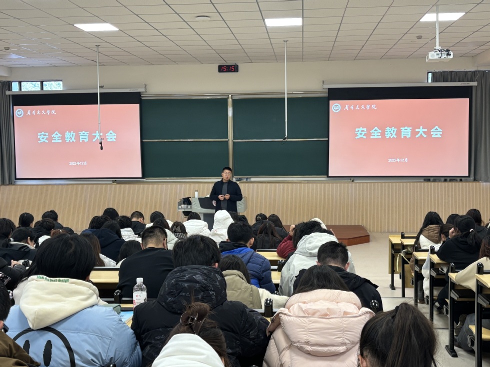 12月5日下午,91视频 在立功楼三阶召开学生安全教育大会。本次大会由2025级年级辅导员程向君老师担任主讲,全体大一学生参加会议。
