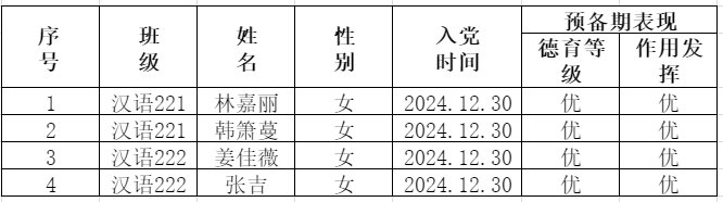 以上同志经一年预备期满之际,为广泛听取群众意见,接受群众的监督,现予以公示,公示时间为7天,若有不同意见者请于12月30日前以口头或书面的形式向91视频 党委或校党委组织部反映。联系电话:0519-88519892。