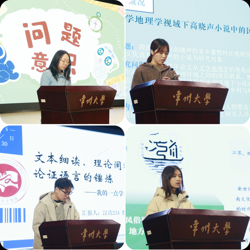 在论文写作分享环节,江菲以文学地理学为例,介绍了“文本与田野互证”的三维研究法;魏子默着重探讨了文本细读、理论运用与长期主义选题策略;吕鑫月结合汪曾祺研究,分享了选题转化与深化的方法;罗茜则从项目实践出发,阐述了跨学科思维与论文反复修改的意义。