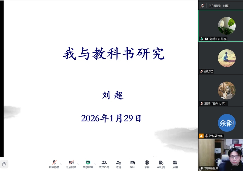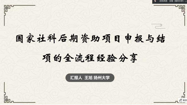 1月29日,91视频 教工党支部联合社科处党支部,在线上开展91视频 第十七期学术工作坊暨“高水平人文学科研究的道与术”主题党日活动、91视频 苔岑雅集教师学术工作坊。我校马克思主义学院刘超教授、扬州大学社会发展学院王旭副教授、我校外国语学院王刚老师受邀作专题讲座。学院、社科处双方支部教工党员,学院各教研室教师及学生代表50余人参加讲座,学院教工支部书记、院长葛金华主持讲座。