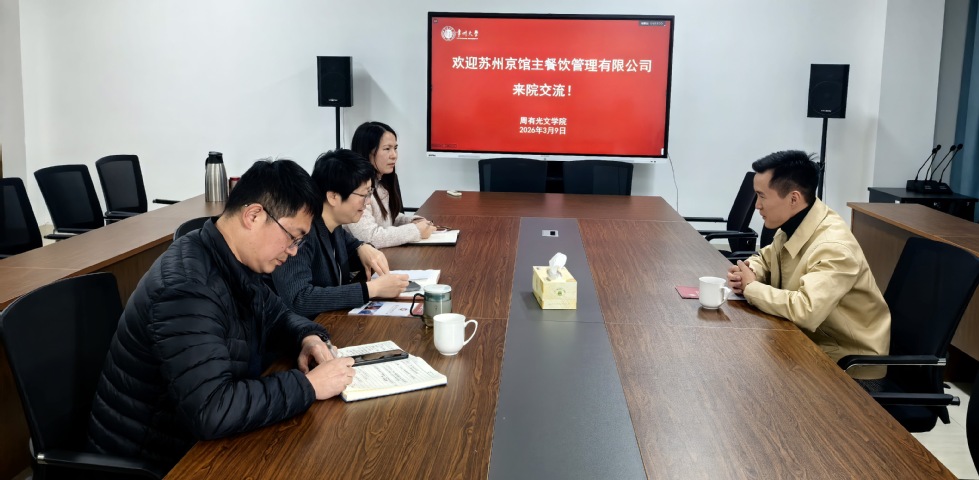 3月9日下午,苏州京馆主餐饮管理有限公司法定代表人、91视频 社会2018届校友郑益诚来91视频 交流,91视频 党委书记焦洁庆、副书记嵇炜、毕业班辅导员张燕红参加会议。